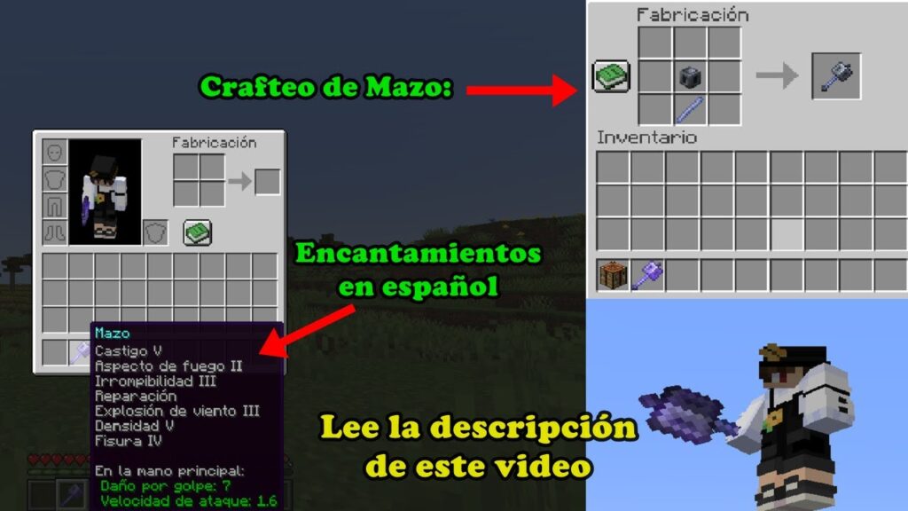 El encantamiento inquebrantable afecta la durabilidad de la maza. Disminuye la posibilidad de que la maza utilice su durabilidad. Al final, el nivel 3 de inquebrantable puede hacer que la maza dure aproximadamente cuatro veces más de lo que dura por defecto. Puedes colocar la maza en la mesa de encantamiento con lapislázuli para que sea potencialmente inquebrantable.